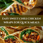 Sweet Chili Chicken Wraps are a vibrant and easy meal perfect for lunch or a light dinner. Combining tender chicken coated in a sweet and tangy chili sauce with fresh, crunchy vegetables makes each bite refreshing and flavorful.