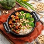 - Garnish and Serve: Garnish the tofu with finely sliced scallions, sesame seeds, toasted cashews (if using), and a sprinkle of red pepper flakes (if desired) before serving. Enjoy hot.