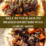 Keywords: braised short ribs, garlic mashed potatoes, comfort food, beef short ribs, braising, oven-braised ribs, creamy mashed potatoes