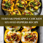 Teriyaki Pineapple Chicken and Rice Stuffed Peppers combine juicy bell peppers filled with a flavorful mixture of shredded chicken, rice, pineapple, and teriyaki sauce. This savory and slightly sweet dish is baked to perfection and optionally topped with melted cheese for a delicious, family-friendly meal.