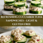 This cucumber tuna sandwich is a fresh and light twist on the classic tuna salad sandwich. Using crisp cucumber slices instead of bread makes it a refreshing, gluten-free option perfect for a quick lunch or snack.