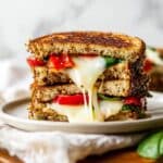 Keywords: Tomato Basil Grilled Cheese, Grilled Cheese Sandwich, Mozzarella Grilled Cheese, Tomato Basil Sandwich, Easy Lunch, Comfort Food