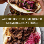 This authentic Turkish Döner Kebab recipe features a flavorful blend of ground beef or lamb mixed with aromatic spices and yogurt, then shaped into a log and frozen for easy slicing. Pan-cooked to a perfect brown, the kebab is served with a refreshing onion sumac salad and creamy white cucumber sauce on warm pita or flatbread, delivering a deliciously satisfying meal inspired by Istanbul street food.