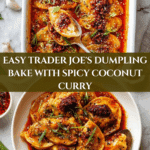 This Viral Trader Joe’s Dumpling Bake is a flavorful, comforting dish featuring crispy potstickers baked in a creamy Thai-style red curry sauce. Topped with fresh cilantro, green onions, and a spoonful of crunchy chili crisp, it’s an easy and delicious meal that’s perfect for a quick dinner or entertaining guests.