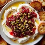 A creamy and tangy whipped feta dip enhanced with sweet honey, crunchy pistachios, and tart dried cranberries. This easy no-cook appetizer blends feta and cream cheese into a smooth, fluffy spread perfect for serving with crusty bread, pita, or crackers.